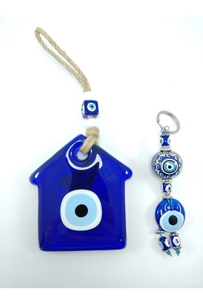 Yeni Ev Hediyesi Cam Nazarlık Seti Duvar Dekoru + Anahtarlık