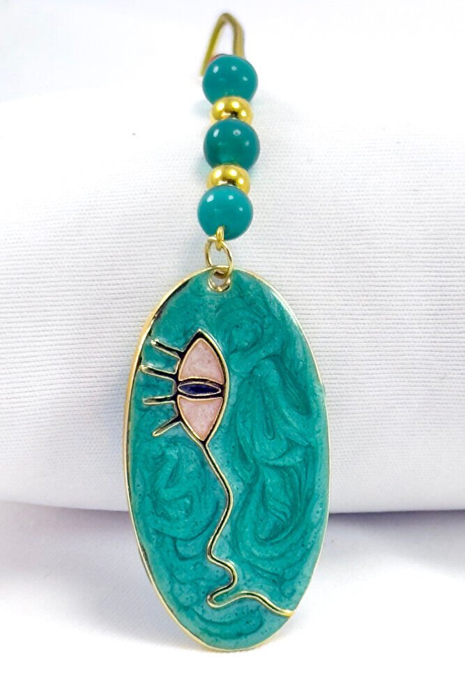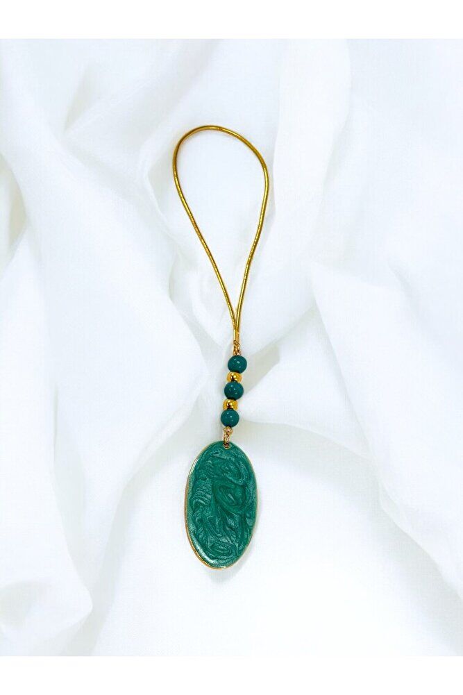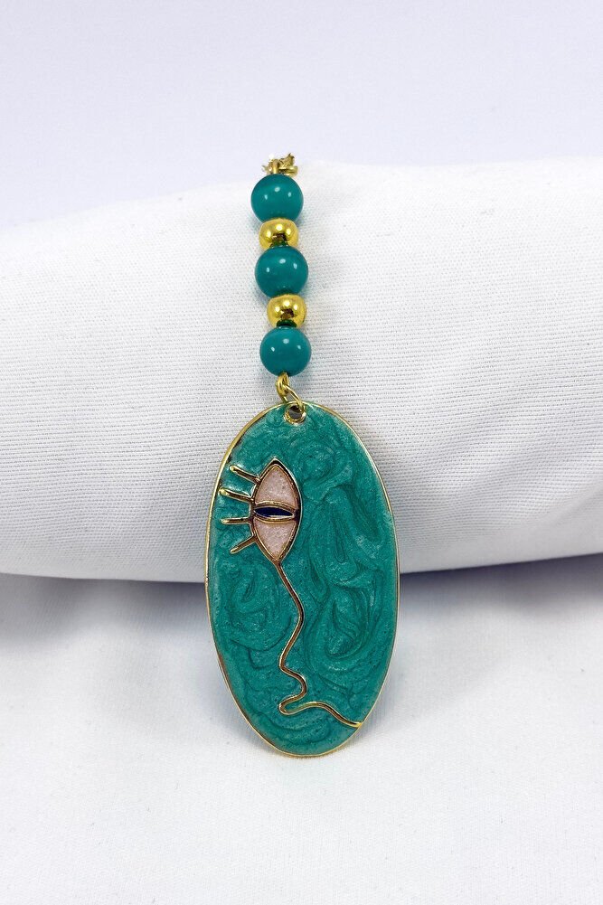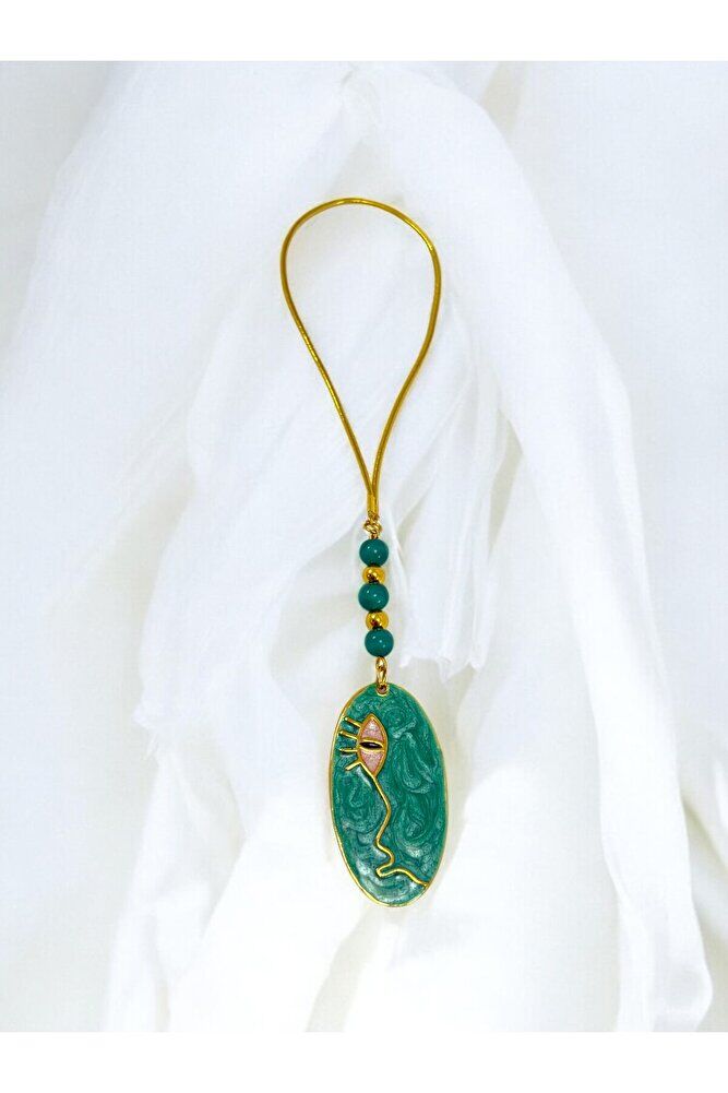 Yeşil Boncuklu Sedefli Yüz Dikiz Ayna Süsü, Metal Lineart Yüz Figürü Tarz Yeni Araba Hediyesi