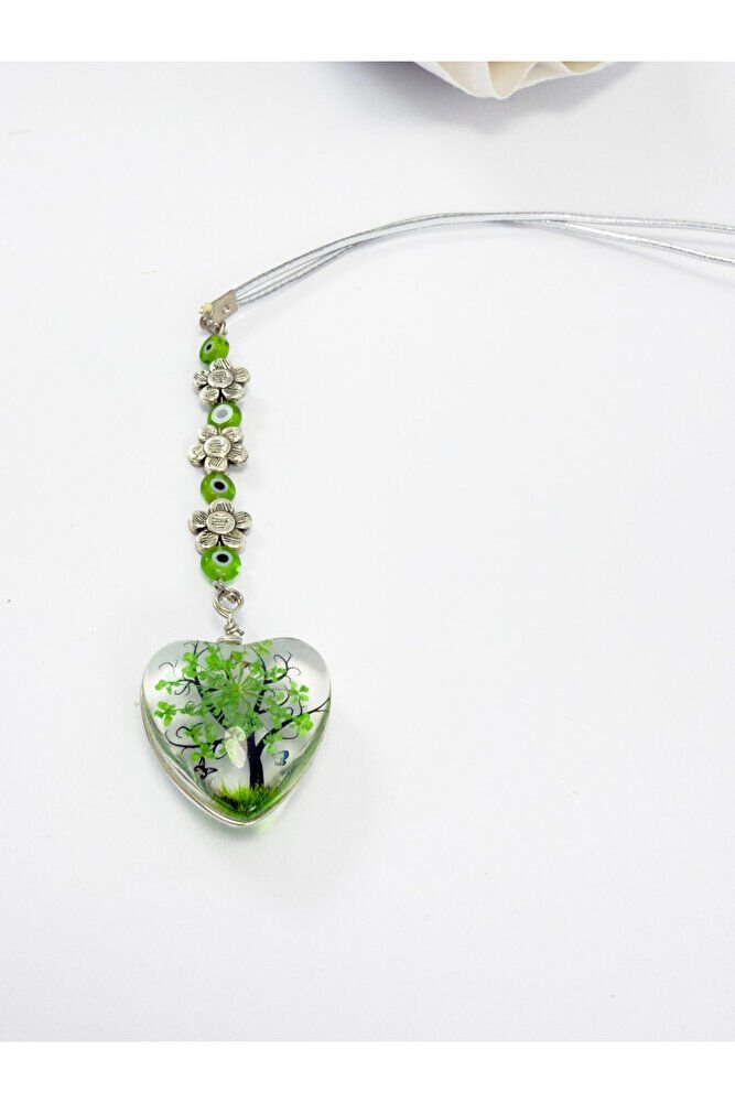 Ürün el yapımıdır.; el yapımı olduğu için ufak farklılık ve düzensizlikler olasıdır.; İpi lastiklidir.; Lastikli olduğu için her model araca rahatlıkla takılabilmektedir.; Yeşil küçük nazar boncukları el yapımı camdır.; Eskitme çiçekler metaldir.; Yaşayan Manzara camdır ve çift taraflıdır.; Ürün çift taraflıdır.;