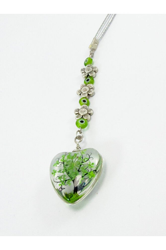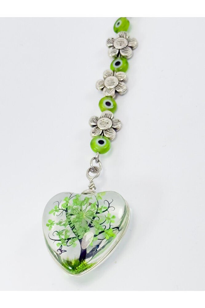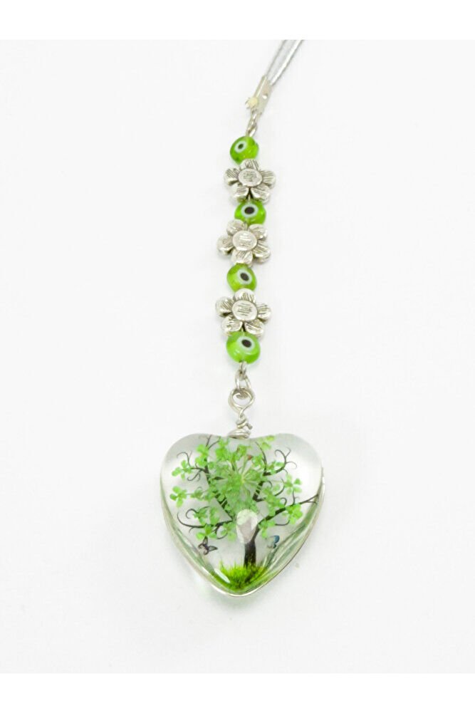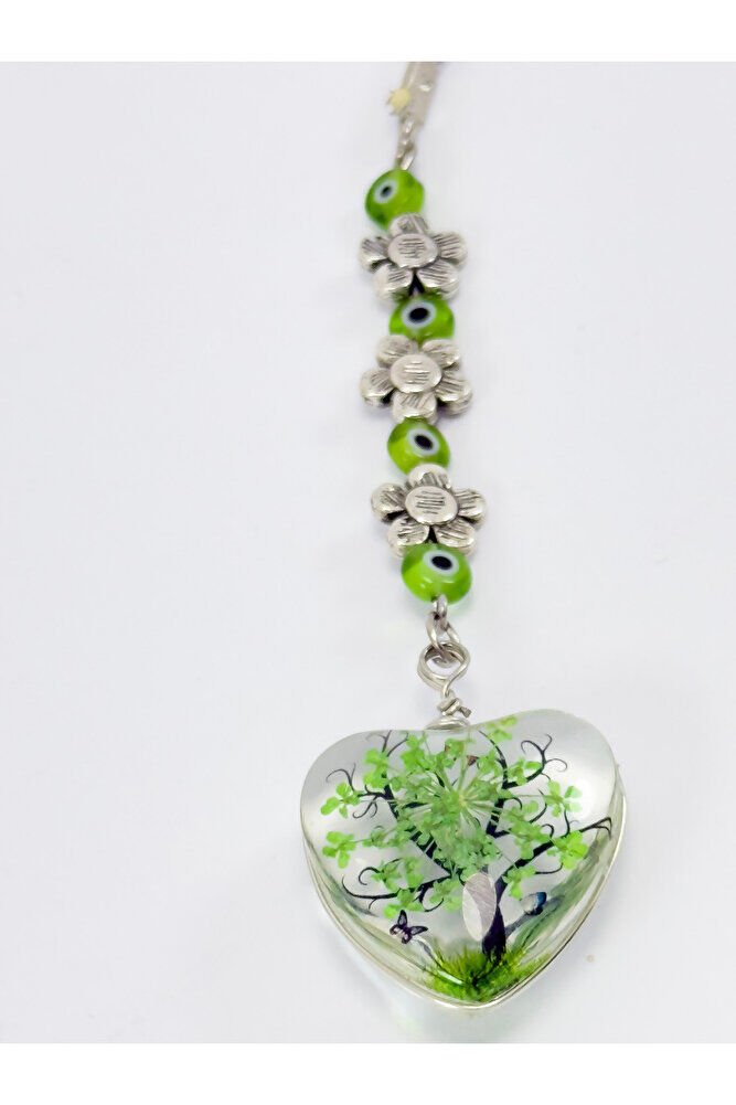 Yeşil Cam Nazar Boncuk Eskitme Çiçekli Yaşayan Manzara Araba Dikiz Ayna Süsü, Yeni Araba Hediyesi