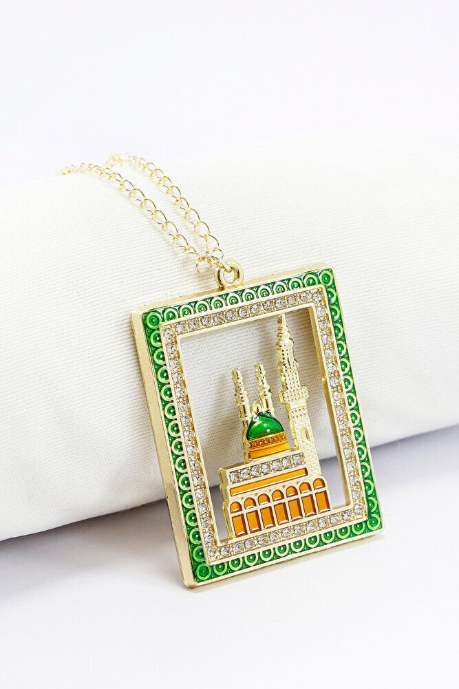 Yeşil Çerçeveli Taşlı Araba Dikiz Ayna Süsü, Püsküllü Araba Dekoru