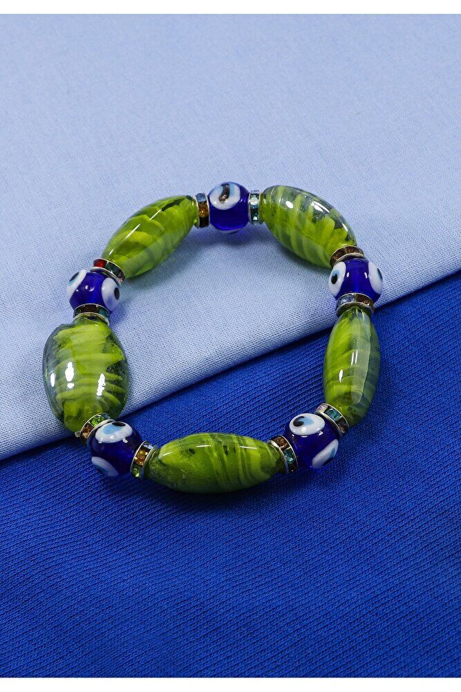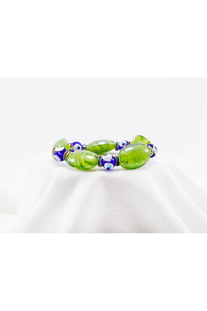 Yeşil Yassı Boncuklu Bileklik, Hediyelik El Yapımı Cam Nazar Boncuklu Bileklik