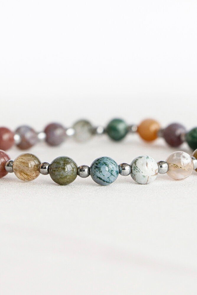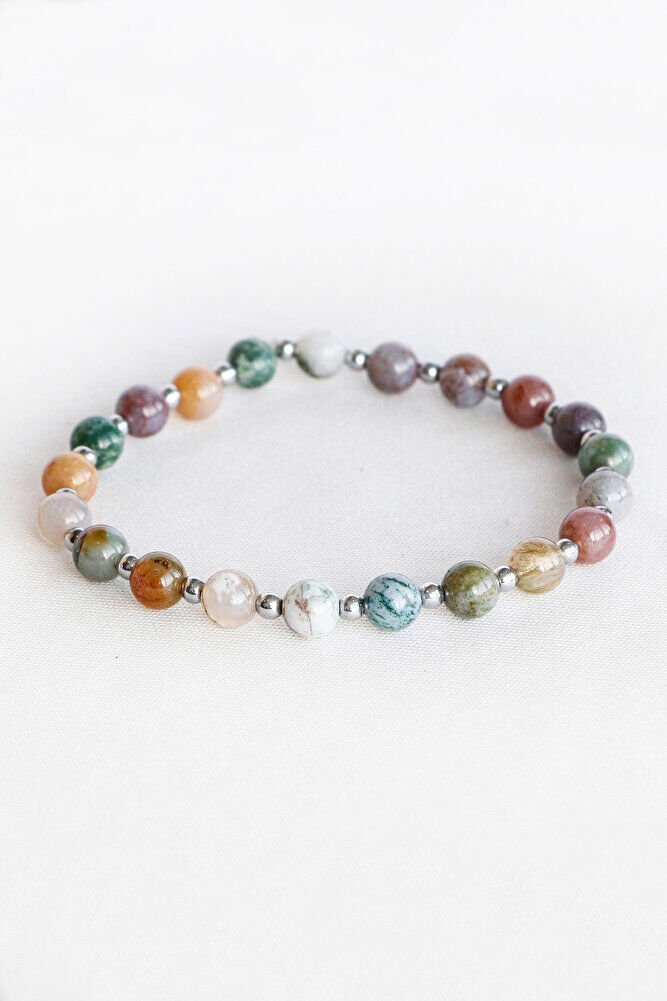 Yosun Akik Doğal Taşlı Lastikli Bileklik 6mm, Hediyelik Doğal Güzellikler