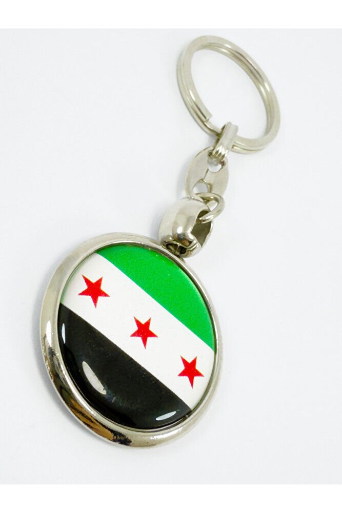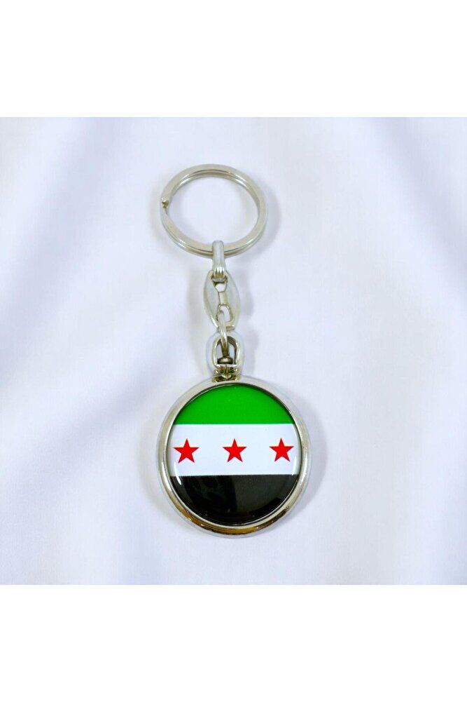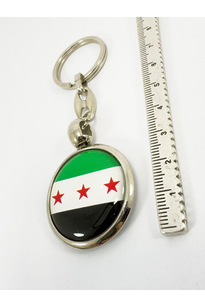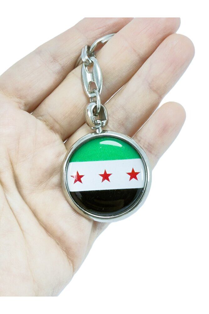Yuvarlak Suriye Bayrağı Anahtarlık, Çift Taraflı Bombeli