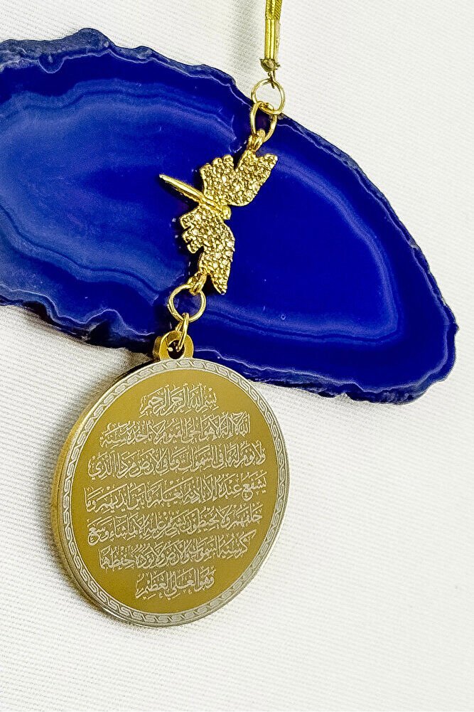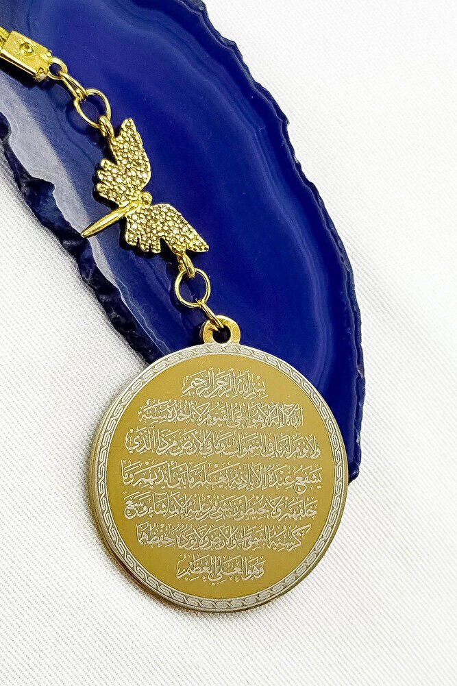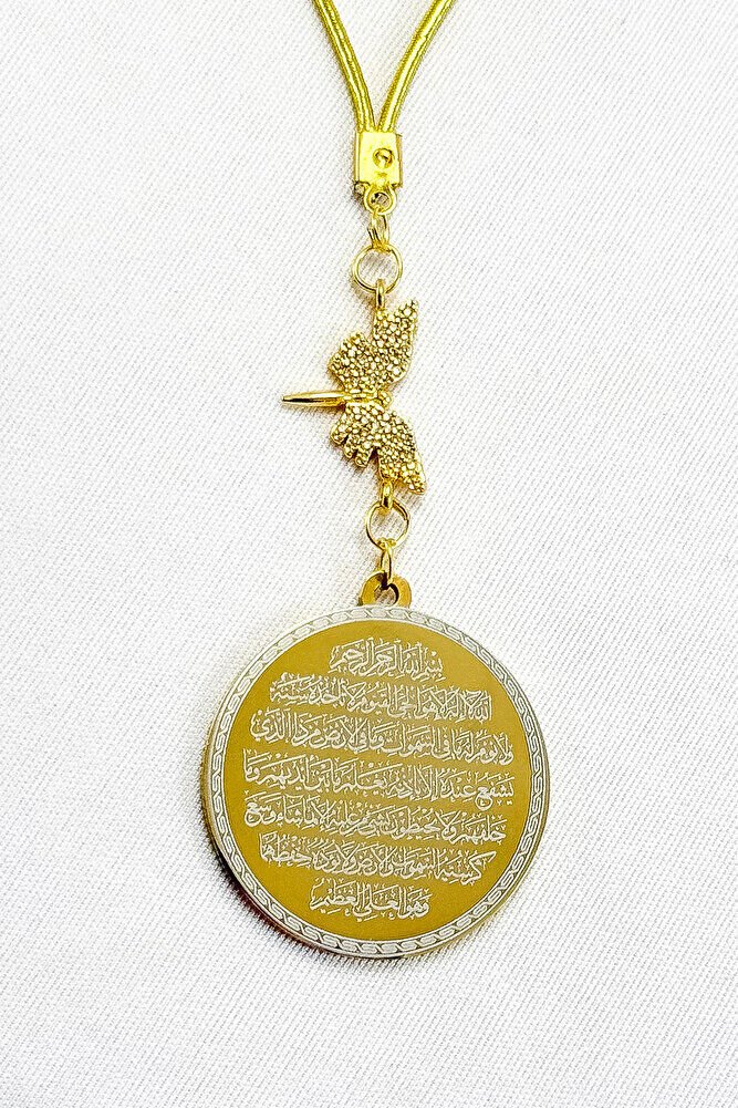 Zirkon Taşlı Kelebek Aksesuarlı Çelik Ayetel Kürsi Felak Nas İhlas Araba Dikiz Ayna Süsü