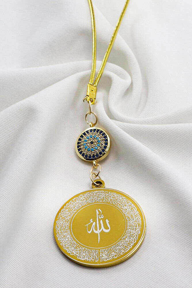 Zirkon Taşlı Nazarlı Ayetel Kürsi Allah Lafzı Felak Nas İhlas Çelik Araba Ayna Süsü