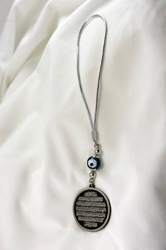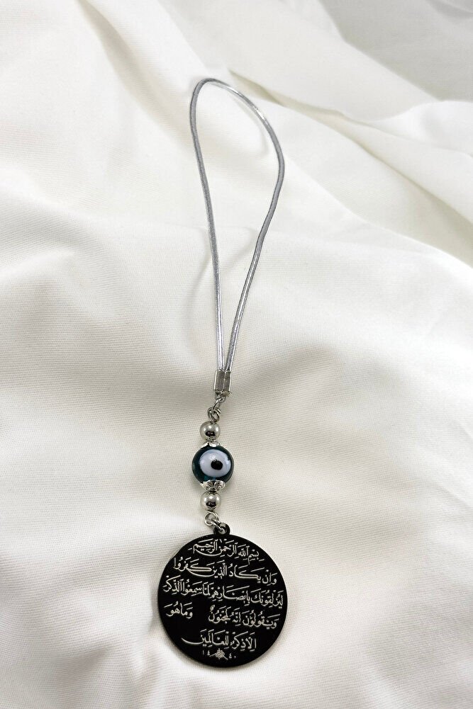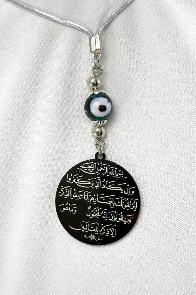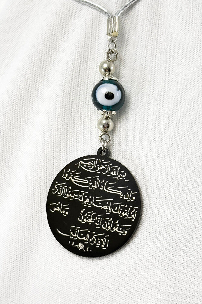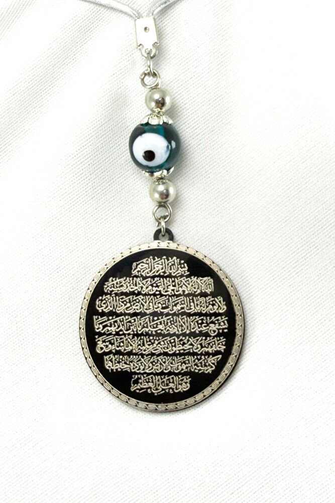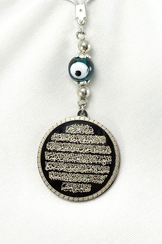 Zümrüt Yeşili Boncuklu Siyah Çelik Çift Taraflı Ayetel Kürsi /Nazar Ayeti Araba Dikiz Ayna Süsü